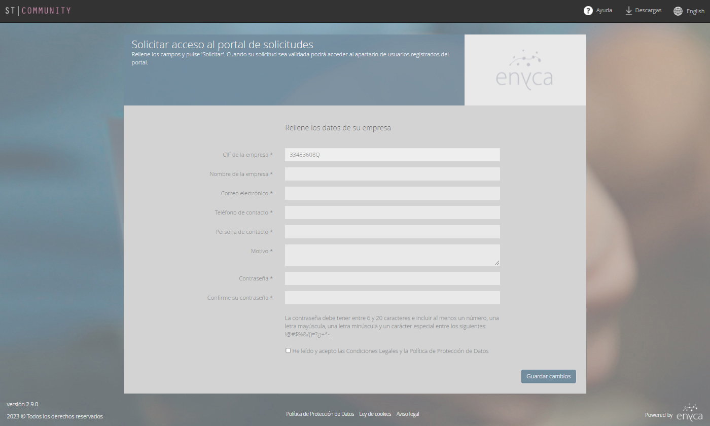 Solicitud de acceso al portal de solicitudes ST Community